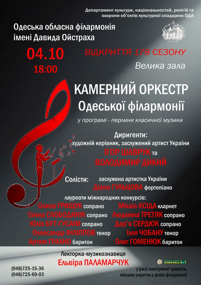 Повідомляємо, що Одеська обласна філармонія працює у звичайному режимі.